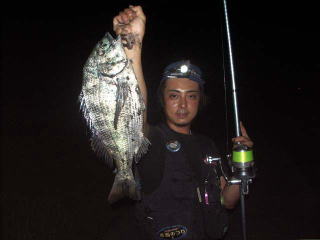 18時頃よりウナギ数匹が釣れ、まずは25cm程のクロダイ、続いて45cmの良型をゲットン。
