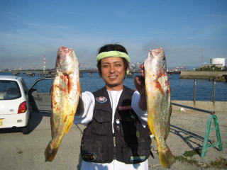 続いて44センチのイシモチゲット!!野口君もランク物の黒鯛をゲットしました!!