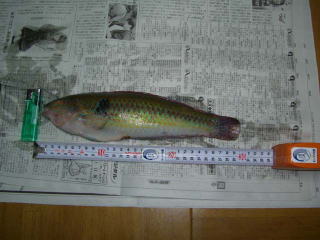 するとコンとアタリが有り、巻き上げると何と26cmのキュウセンが釣れた!!久しぶりのキュウセンに感激!!!