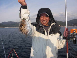 初日、熊野の沖磯でカワハギ狙いで磯に渡るが、不発!!異常なほどフグの猛攻を受け撃沈!!