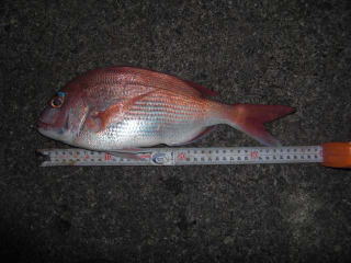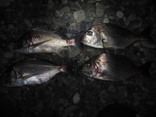 打ち返しを続けていると、コンコンと控えめなアタリが有り、キチヌの40cm、35cmが来て、PM8:00に納竿とした。