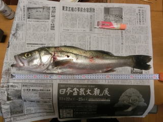 <div>それから1時間後、僕の竿に微妙なアタリがありスズキ55センチが釣れ納竿で