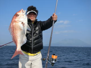 少し時間が過ぎ、大宮君がコロダイ65センチをGETし此方はマダイ53センチでまたまた正月マダイポロポロで潮が完全に止まりマンダムタイム突入。