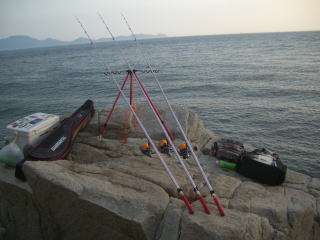 朝から渡船に乗り込み現地到着すると良い潮が行っており直ぐに3本の竿をセットし投げ入れていく!