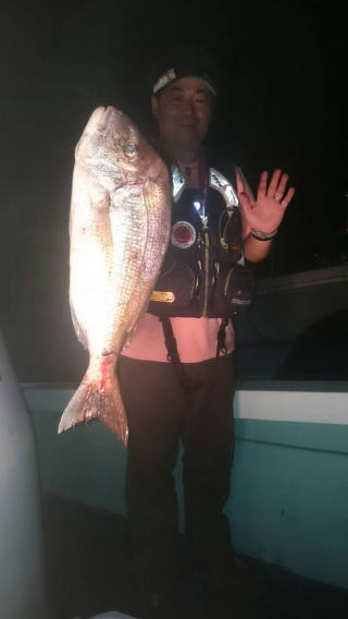 途中から「ゴン!ゴン!ゴン!」と首を振ってきてマダイ60cm(^^)